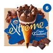 Laissez-vous séduire par le cône CŒUR FONDANT-BROWNIES d'Extrême pour un vrai moment de plaisir. Savourez son cœur fondant - brownies au sein de deux glaces chocolat et vanille, le tout parsemé de morceaux de brownies, dans une gaufrette croustillante et pour finir, le délicieux bonbon EXTRÊME.