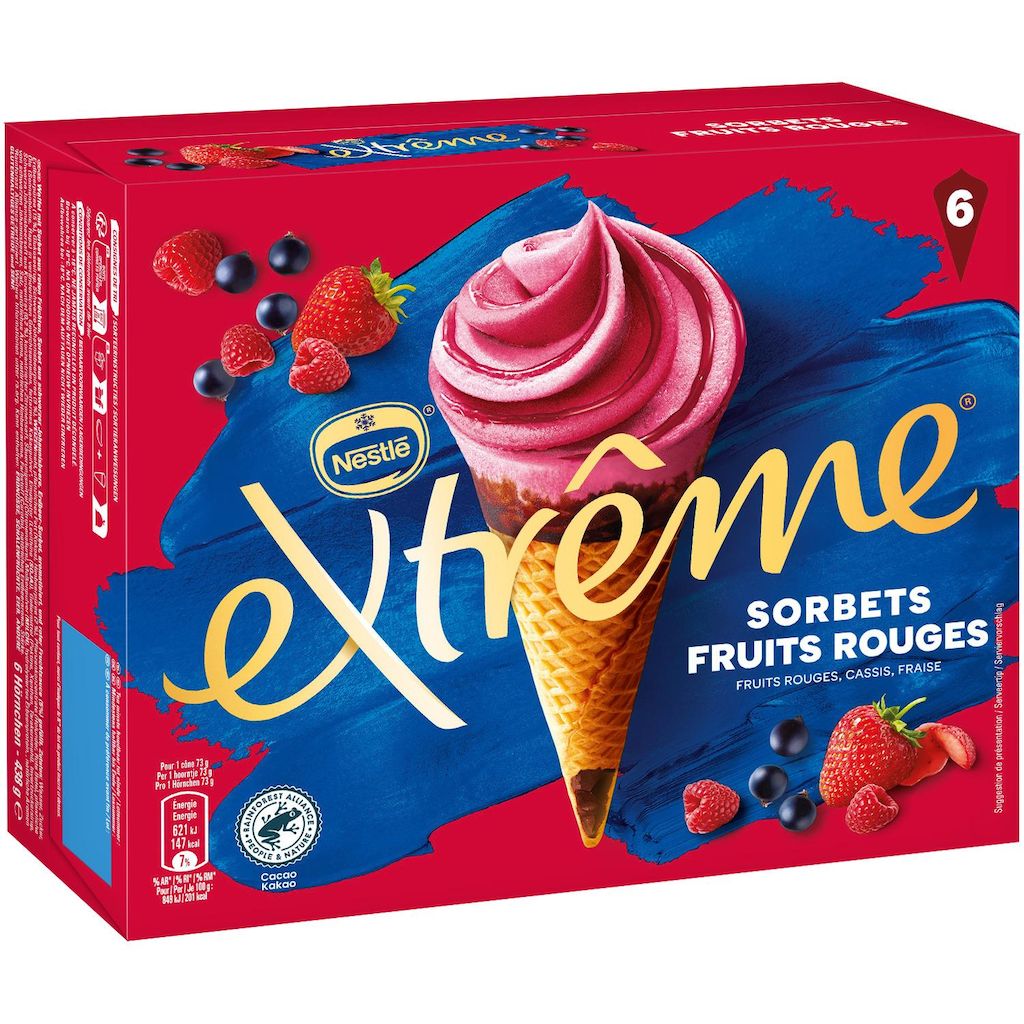 EXTREME SORBETS Cône Sorbets Fruits Rouges 6 x 73g