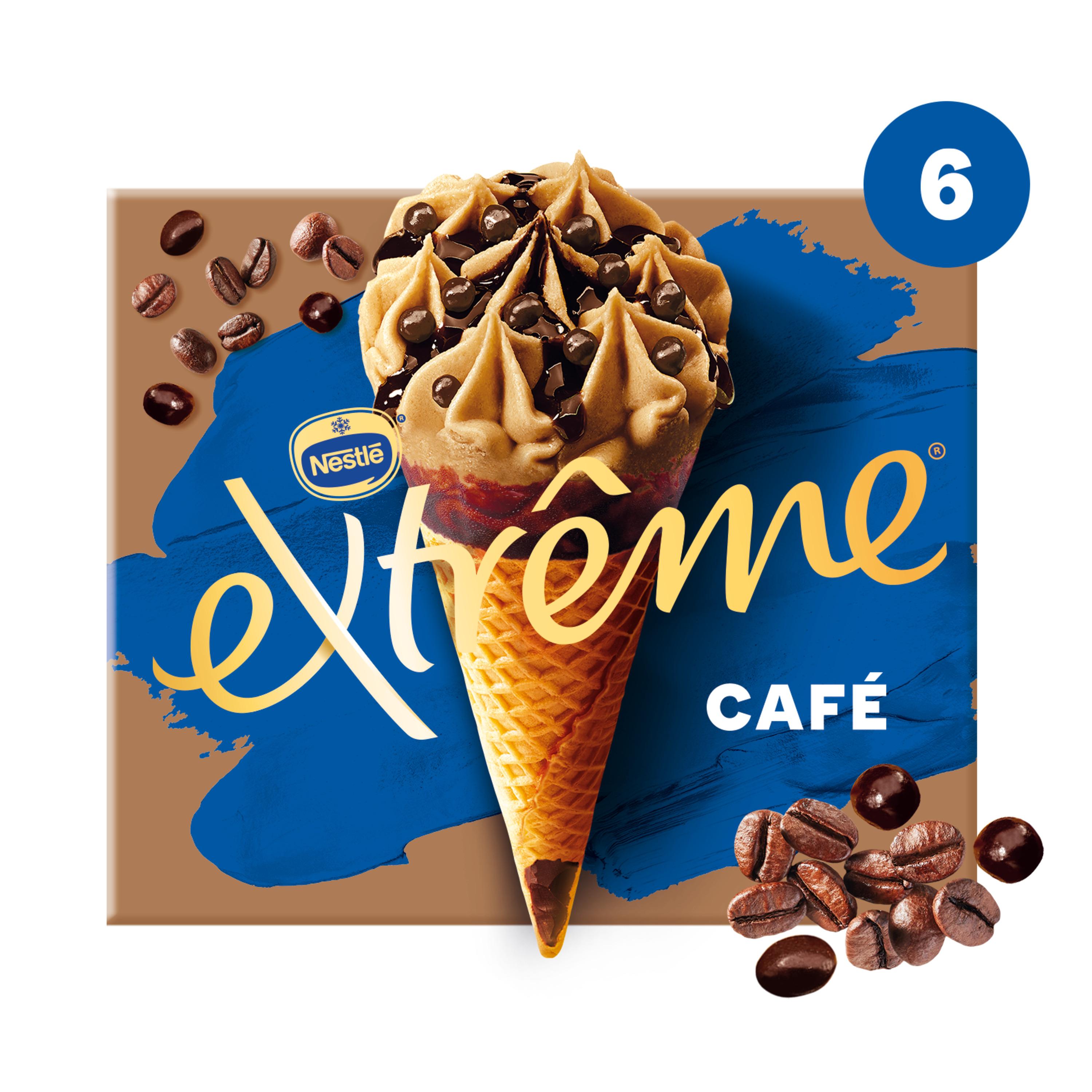 Succombez à l'onctuosité d'une glace café et à l'intensité d'une sauce au café et au chocolat, le tout dans une gaufrette croustillante et pour finir, le délicieux bonbon EXTREME.