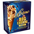Repoussez les frontières de la gourmandise avec EXTREME CHUNKY FACTORY. L'alliance d'une glace vanille onctueuse et d'une glace vanille points de gousse avec un généreux cœur de sauce au caramel et de vrais gros morceaux de chocolat et de noisettes, le tout dans une gaufrette croustillante, et pour finir, le délicieux bonbon EXTRÊME.