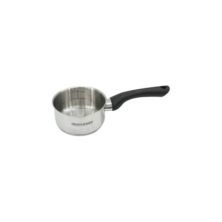 En savoir +- DESCRIPTION: Casserole Fackelmann Geneva en acier inoxydable de 12 cm avec bec verseur et échelle de mesure, intérieur satiné et extérieur poli miroir