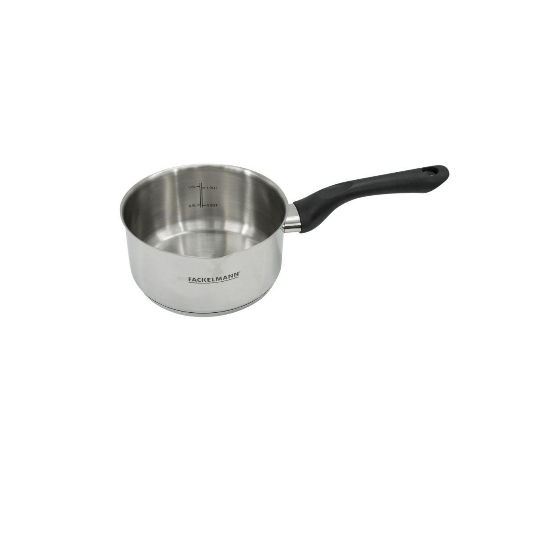 - DESCRIPTION: Casserole Fackelmann Geneva en acier inoxydable 20 cm idéale pour 3 à 4 personnes, avec bec verseur et échelle de mesure, intérieur satiné et extérieur poli miroir