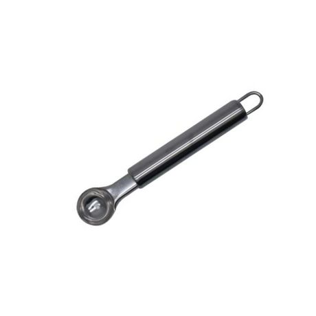 Cette cuillère à pomme parisienne entièrement en acier inoxydable est parfaite pour réaliser de petites sphères de fruits, de légumes, de fromage, de foie gras et de tous les autres aliments que vous pouvez creuser.