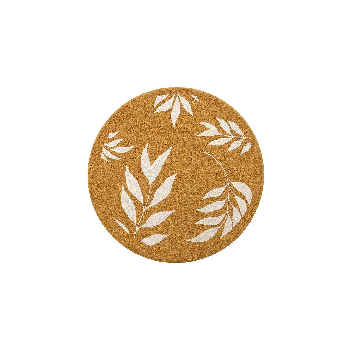 - CONTENU : 1 dessous de plat rond en liège avec décor blanc