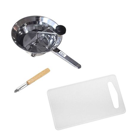 - DESCRIPTION : Ce lot comprend une planche à découper, un éplucheur de légumes et un moulin à légumes, un ensemble de cuisines essentiel pour la préparation de vos repas, du découpage du pain à l'épluchage des légumes et la réalisation de purées