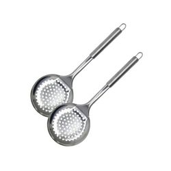 Profitez du lot de 2 écumoires Fackelmann de 32 cm, conçues en acier inoxydable pour une durabilité optimale. Chaque écumoire est équipée d'un crochet ergonomique pour un rangement facile. Idéales pour retirer sans risque vos beignets, raviolis, ou œufs durs de l'eau chaude, elles sont également par