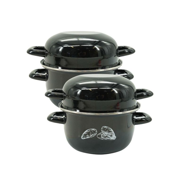 Découvrez notre lot de 2 marmites à moules émaillées Fackelmann, idéales pour une cuisson parfaite de vos moules comme au restaurant. Avec un diamètre de 20,5 cm et une capacité d'environ 3 litres chacune, ces marmites en acier carbone émaillé offrent robustesse et élégance. Leurs couvercles pratiqu