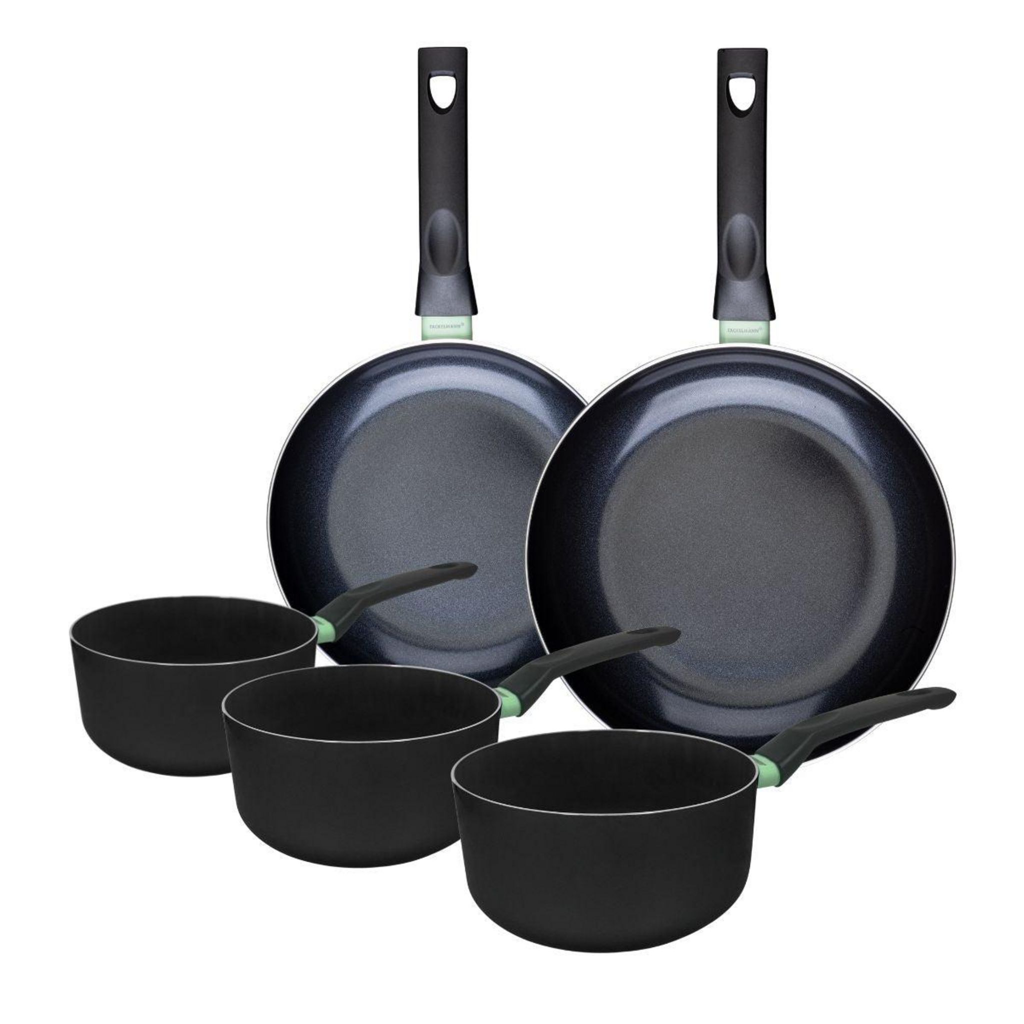 Ensemble de 2 poêles de 24 et 28 cm et 3 casseroles 16, 18 et 20 cm Fackelmann Brandao