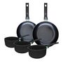 - DESCRIPTION: Set Fackelmann Brandao comprenant poêles de 24 cm et 28 cm, casseroles de 16 cm, 18 cm et 20 cm en aluminium recyclé, avec revêtement céramique antiadhésif sans PFAS