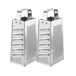 Découvrez le lot de 2 râpes à 4 faces de 23 cm Fackelmann, un ustensile indispensable pour votre cuisine. Chaque râpe offre 4 tailles de découpe différentes, vous permettant de râper ou trancher facilement fromage, légumes et fruits. Fabriquées en fer inox, elles sont non seulement durables mais éga