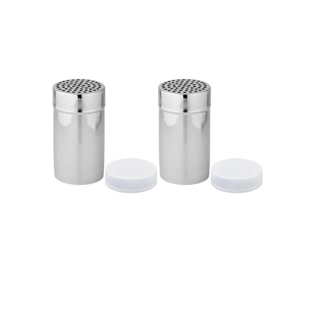 Découvrez ce lot de 2 saupoudreuses à sucre glace et cacao de Fackelmann, conçues pour les amateurs de cuisine et de pâtisserie. Fabriquées en acier inoxydable, elles mesurent 13 cm de haut et 7 cm de diamètre. Le couvercle en plastique maintient vos ingrédients au sec, tandis que les perforations de 0,4 cm permettent un saupoudrage précis de sucre, cacao ou parmesan. L'entretien est facile, le corps en inox est lavable au lave-vaisselle, assurant une durabilité optimale. Ajoutez une touche délicate à vos plats et pâtisseries avec ce duo pratique.