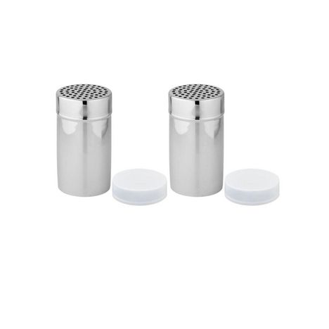 Découvrez ce lot de 2 saupoudreuses à sucre glace et cacao de Fackelmann, conçues pour les amateurs de cuisine et de pâtisserie. Fabriquées en acier inoxydable, elles mesurent 13 cm de haut et 7 cm de diamètre. Le couvercle en plastique maintient vos ingrédients au sec, tandis que les perforations d