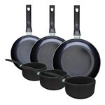 Ensemble de 3 poêles de 24, 28 et 30 cm et 3 casseroles 16, 18 et 20 cm Fackelmann Brandao