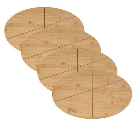 Ce lot de 4 planches à pizza Fackelmann en bois de bambou est l'accessoire parfait pour tous les amateurs de pizza. Avec un diamètre de 32 cm, chaque planche est équipée de rainures de coupe intégrées, facilitant la découpe de vos pizzas, tartes flambées et quiches en 6 parts égales. Fabriquées en b