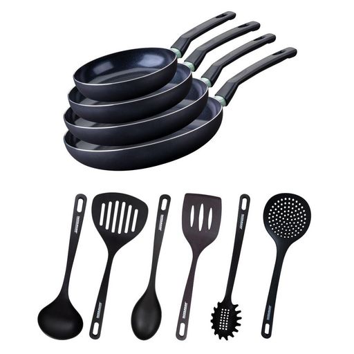 Ensemble de 4 poêles de 20 24 28 et 30 cm et 6 ustensiles Fackelmann Brandao