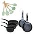 Lot 2 Poêles 16/20cm et 3 Casseroles 16/18/20cm Fackelmann Brandao avec 5 ustensiles Océan