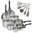 - DIMENSIONS : Faitouts de 16, 20, 24 cm, casseroles de 12, 16, 20 cm, poêles de 20, 24 cm, ustensiles ergonomiques.