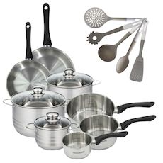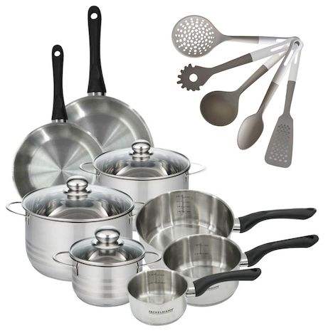 - DESCRIPTION : Ensemble complet Fackelmann Geneva avec 3 faitouts, 3 casseroles, 2 poêles et 5 ustensiles pour une cuisine polyvalente et élégante.