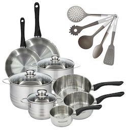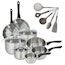Lot 2 Poêles 20/24 cm, 3 Faitouts 16/20/24 cm & 3 Casseroles 12/16,/20 cm Fackelmann Geneva et 5 Ustensiles