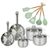 - COMPOSITION : Faitouts en acier inoxydable de haute qualité, résistance à la chaleur jusqu'à 240°C, poêles en inox 18/8, ustensiles en silicone et bois.