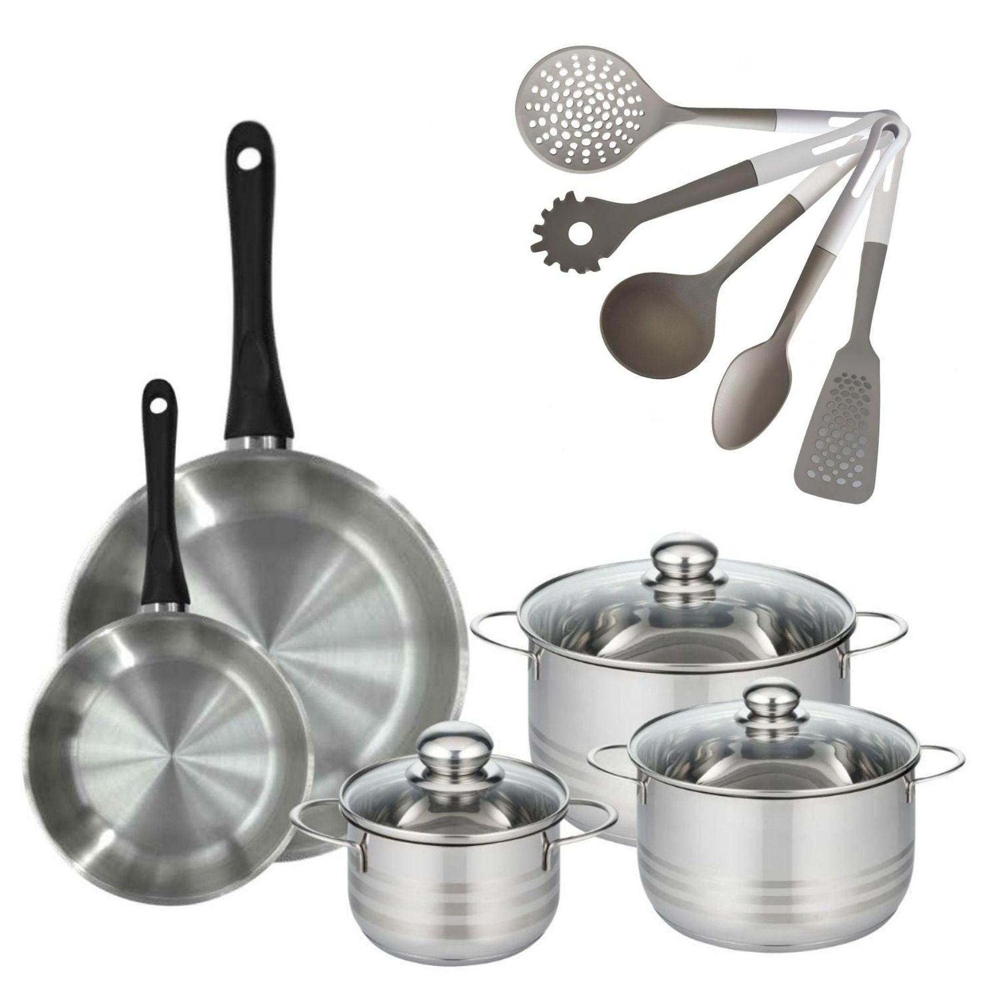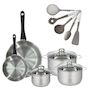 Lot 2 Poêles 20/28cm Fackelmann Geneva et 3 Faitouts 16/20/24cm avec 5 ustensiles Fackelmann