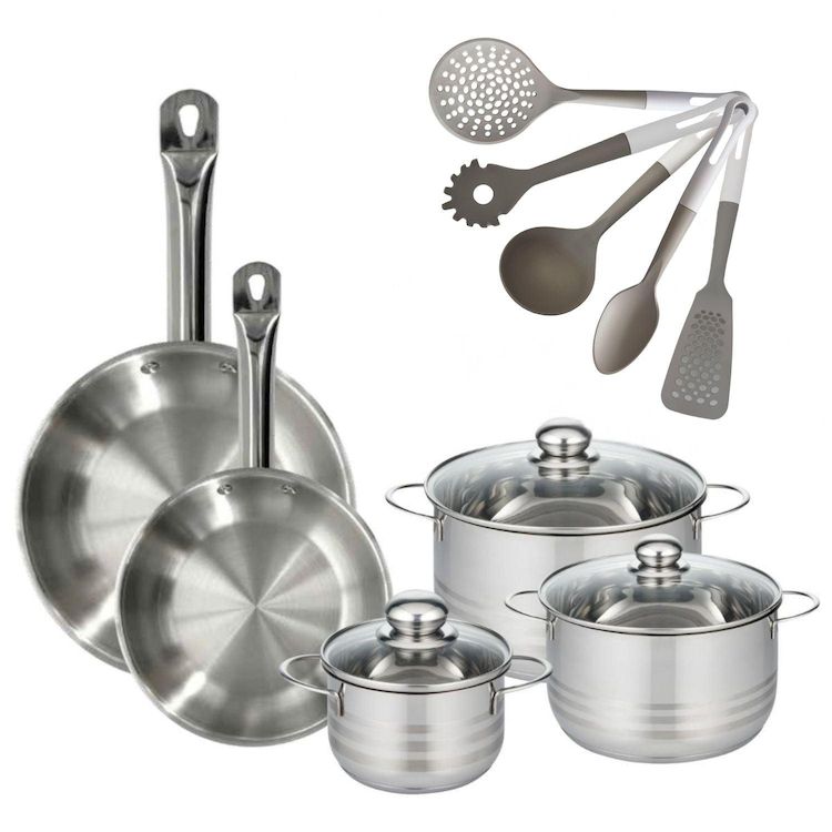 - DESCRIPTION : Le lot Fackelmann Eterna inclut des poêles et faitouts en inox pour une cuisson homogène, accompagnés d'ustensiles ergonomiques en PBT.