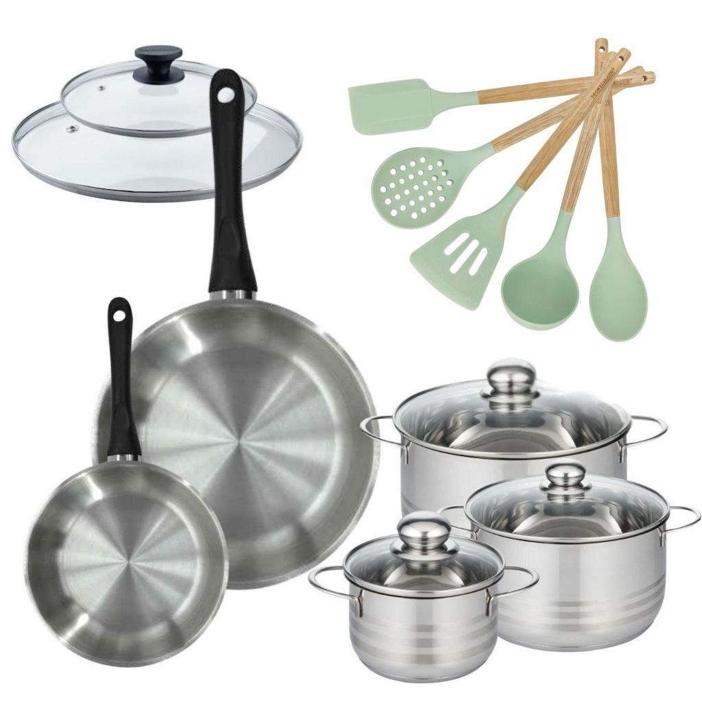 Ce lot de cuisine Fackelmann Généva comprend 3 faitouts en acier inoxydable de 16, 20 et 24 cm, ainsi que 2 poêles de 20 et 28 cm. Les faitouts, avec leur fond capsulé, garantissent une répartition uniforme de la chaleur sur tous types de feux, y compris à induction. Fabriqués en inox de haute qualité, ils sont résistants à la chaleur jusqu'à 240°C. Accompagnés de 5 ustensiles ergonomiques, ces produits répondent aux attentes des chefs professionnels et des amateurs de cuisine. Chaque ustensile a été conçu pour offrir une prise en main agréable et une durabilité optimale. Ensemble, ils font de ce lot un choix judicieux pour toute cuisine moderne.
