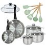 - COMPOSITION : Faitouts et poêles en acier inoxydable 18/8, ustensiles en silicone et bois, tous sans PFAS.