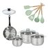 Lot 3 Faitouts 16/20/24cm et Poêle 20cm Fackelmann Généva avec 5 ustensiles de cuisine