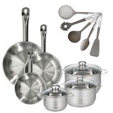 Ce lot Fackelmann est conçu pour répondre aux exigences des chefs professionnels et des amateurs de cuisine. Composé de poêles en inox Eterna de 20, 24 et 28 cm, il assure une répartition uniforme de la chaleur grâce à son noyau en aluminium, ce qui est essentiel pour des résultats de cuisson optimaux. Les poêles sont compatibles avec tous types de feux, y compris l'induction, et peuvent être utilisées au four jusqu'à 200°C. Les faitouts en inox de 16, 20 et 24 cm sont équipés de couvercles en verre résistants aux chocs, permettant une cuisson saine et efficace. Ce lot est complété par 5 ustensiles de cuisine , fabriqués en PBT, garantissant légèreté et résistance à la chaleur. Ces ustensiles sont parfaits pour le service et la préparation de divers plats, offrant un confort d'utilisation inégalé. Ce lot est une solution complète pour une cuisine moderne, alliant performance, durabilité et design élégant.