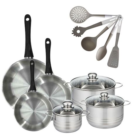 - DESCRIPTION : Ensemble complet avec poêles en inox et faitouts pour une cuisine polyvalente. Les ustensiles en PBT offrent confort et durabilité.