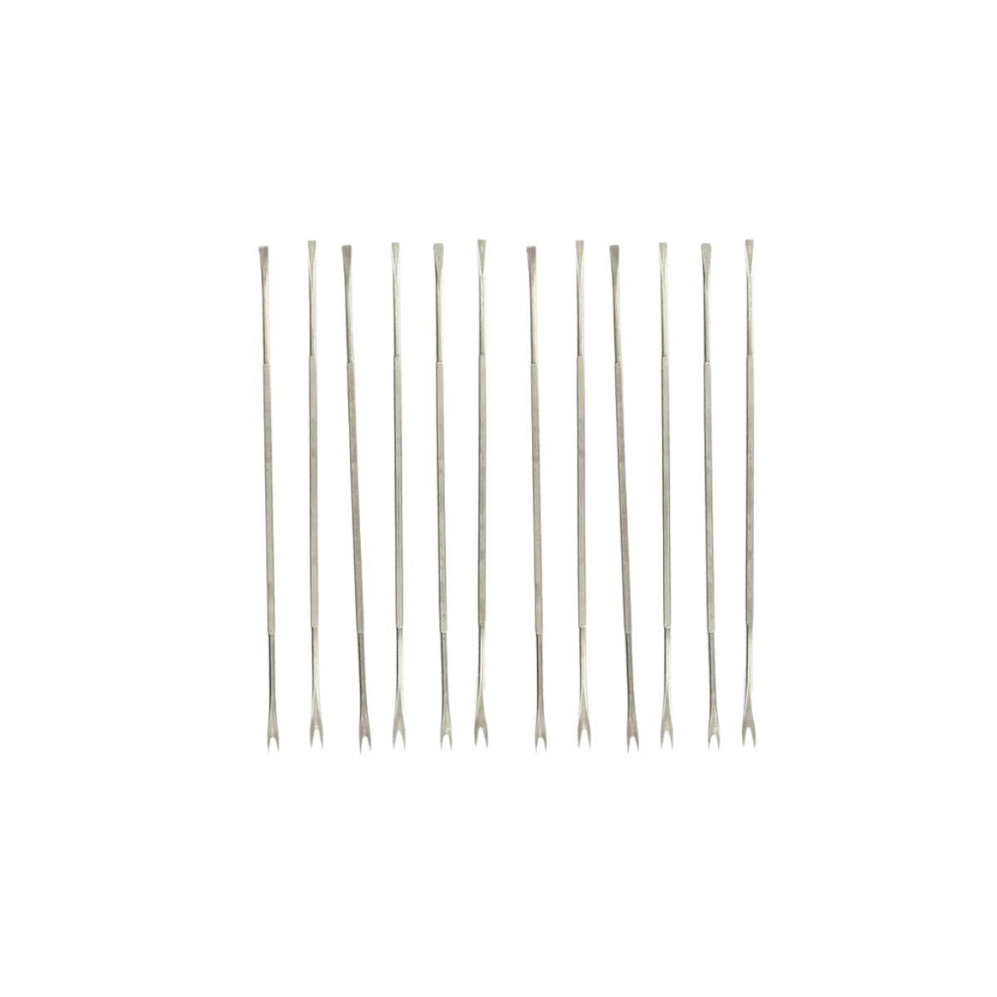 Le lot contient 12 curettes à crustacés, soit 6 curettes droites et 6 curettes courbes. Les curettes droites sont idéales pour extraire la chair des pattes et des pinces, tandis que les curettes courbes sont parfaites pour atteindre les parties les plus difficiles d'accès, comme les coins et les recoins des coquilles. Avec ces curettes, vous pourrez déguster tous les délices de la mer sans effort.