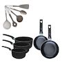 Lot de 2 poêles 16/20 cm et 3 casseroles 16/18/20 cm Fackelmann Brandao avec 5 ustensiles de cuisine