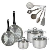 Lot de 2 Poêles 20/24cm Fackelmann Geneva avec 3 Faitouts 16/20/24cm et 5 Ustensiles