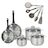 - COMPOSITION : COMPOSITION : Poêles et faitouts en acier inoxydable de haute qualité, ustensiles en PBT, assurant robustesse et durabilité. Compatible avec tous types de feux, y compris l'induction.