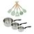 - DIMENSIONS : Casseroles de 12 cm, 16 cm et 20 cm de diamètre. Ustensiles mesurant entre 30 et 31,5 cm de longueur.