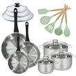 Lot de 3 Poêles 20/24/28cm et 3 Faitouts 16/20/24cm Fackelmann Généva avec 5 ustensiles