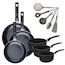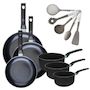 Lot de 3 Poêles 24/28/30 cm et 3 Casseroles 16/18/20 cm Fackelmann Brandao avec 5 ustensiles de cuisine