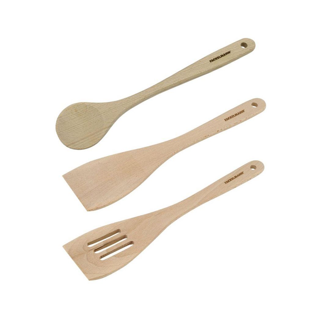 - DESCRIPTION : Fackelmann vous propose ce lot de 3 ustensiles de cuisine en bois composé d'une cuillère en bois, d'une spatule et d'une seconde spatule ajourée afin de mélanger, remuer et servir les aliments