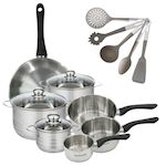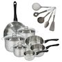 Lot de Poêle 28 cm, 3 Faitouts 16/20/24 cm et 3 Casseroles 12/16/20 cm Fackelmann Geneva et 5 Ustensiles