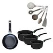 - DIMENSIONS : Poêle Ø 20 cm, Casseroles Ø 16/18/20 cm, Ustensiles: Cuillère 315x60x15 mm, Louche 320x95x15 mm, Écumoire 345x120x15 mm, Pelle 345x70x15 mm, Cuillère à spaghettis 320x65x15 mm.