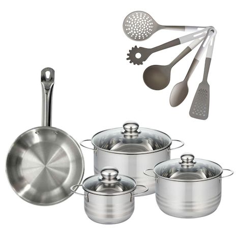 - DESCRIPTION : L'ensemble Fackelmann Etherna inclut une poêle en inox et trois faitouts robustes, accompagnés de cinq ustensiles ergonomiques pour une cuisine efficiente.