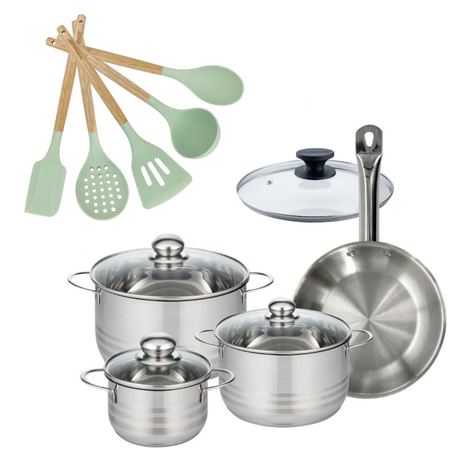 Lot Poêle 24cm et 3 Faitouts 16/20/24cm Fackelmann Etherna avec 6 ustensiles