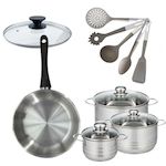 - DESCRIPTION : DESCRIPTION : Ce lot Fackelmann réunit une poêle en inox 28cm et trois faitouts 16, 20, et 24cm, accompagnés de 6 ustensiles essentiels pour une cuisine complète.