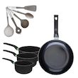 Lot Poêle 30 cm & 3 Casseroles 16/18/20 cm Fackelmann Brandao avec 5 Ustensiles de Cuisine