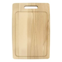 - DESCRIPTION : Planche à découper rectangulaire en bois avec une rainure retenant le jus des aliments coupés et une poignée pour la maintenir ou l'accrocher