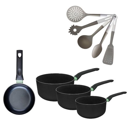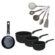 Poêle 16cm et 3 Casseroles 16/18/20cm sans PFAS Fackelmann Brandao avec 5 ustensiles