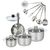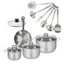 Set 1 poêle 20 cm en inox et couvercle, 3 faitouts inox 16, 20 et 24 cm et 6 ustensiles inox Fackelmann Eterna