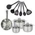 Set 1 poêle 24 cm en inox, 3 faitouts inox 16, 20 et 24 cm et 6 ustensiles RPET Fackelmann Eterna