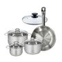 Set 1 poêle 28 cm en inox et 1 couvercle verre, 3 faitouts inox 16, 20 et 24 cm Fackelmann Eterna